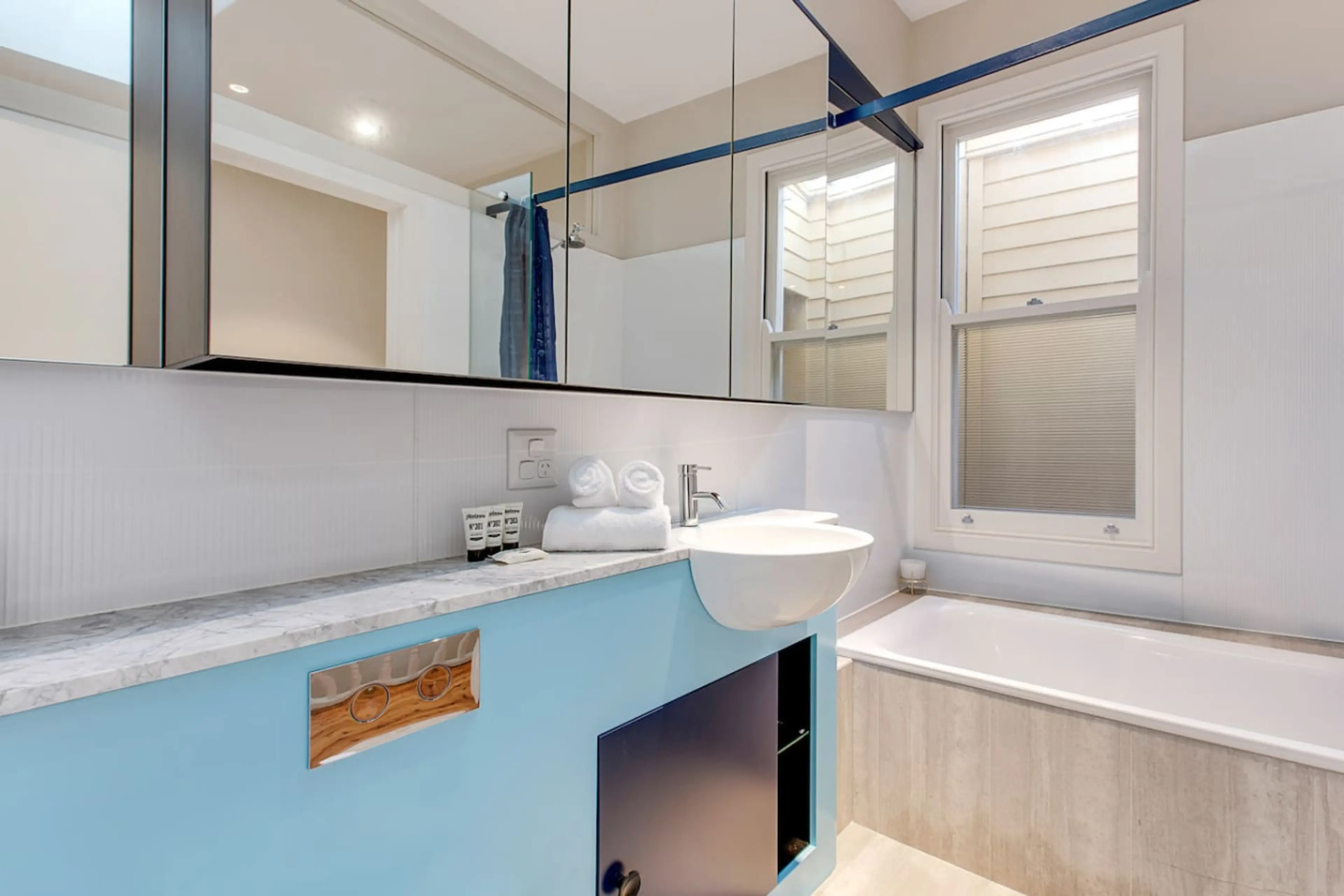Negative: Reviews mention the bathroom a lot which was not ideal but we found that if you “dam” up where the water flows with a hand towel then squeeze out water when finished the floor stayed dry. It does have a very small dark lounge which is not ideal if a larger group. The other thing mentioned was the lack of adequate cups, glasses pots and pans etc. This was pretty frustrating, particularly because for $100-200 (a fraction of a one night charge) this complaint could completely go away!